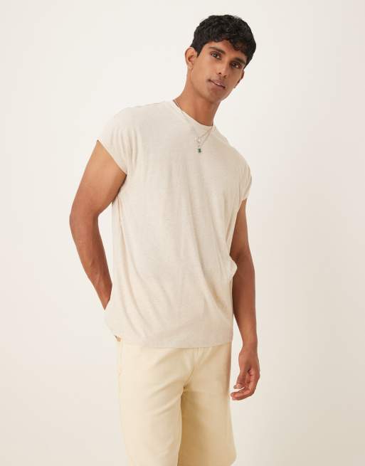 ASOS DESIGN - Beige afslappet T-shirt i hørblanding med vingeærmer