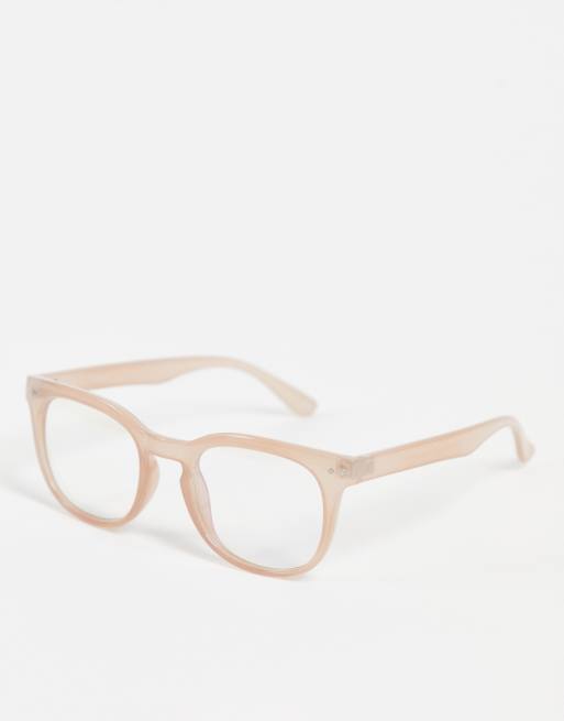 ASOS DESIGN - Beige briller med rundt stel og klare blue light-glas