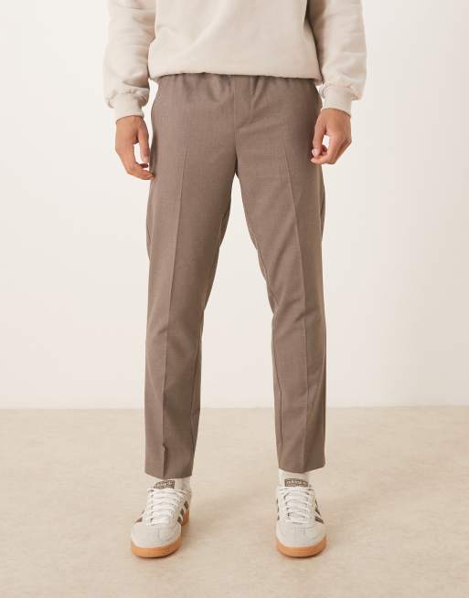 ASOS DESIGN - Beige elegante tapered pull-on-bukser i flonel