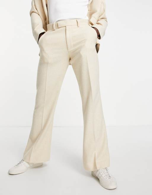 ASOS DESIGN - Beige habitbukser med svaj og sildebensmønster i uldblanding