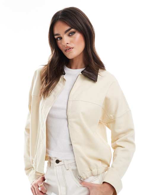 ASOS DESIGN - Beige Harrington-jakke med kontrasterende krave