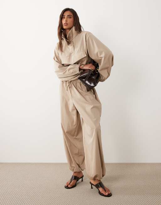 ASOS DESIGN - Beige jakke i tech-materiale med ståkrave og pufdesign - Del af sæt