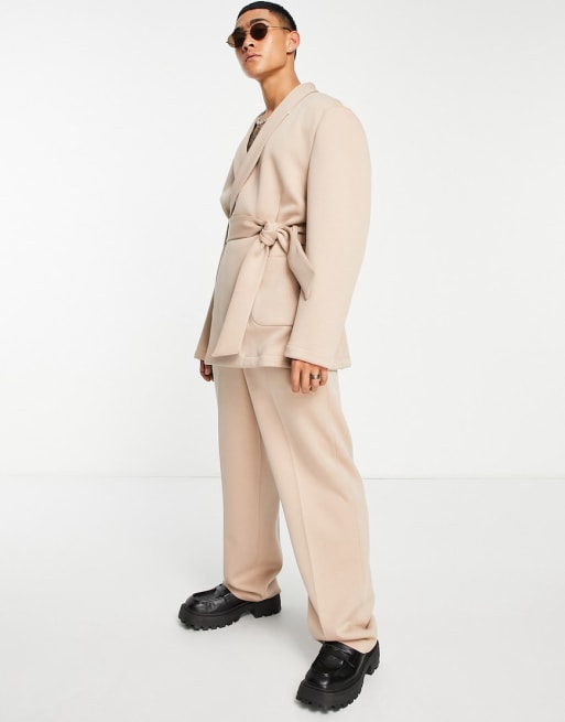 ASOS DESIGN - Beige jakkesæt i twill med brede ben