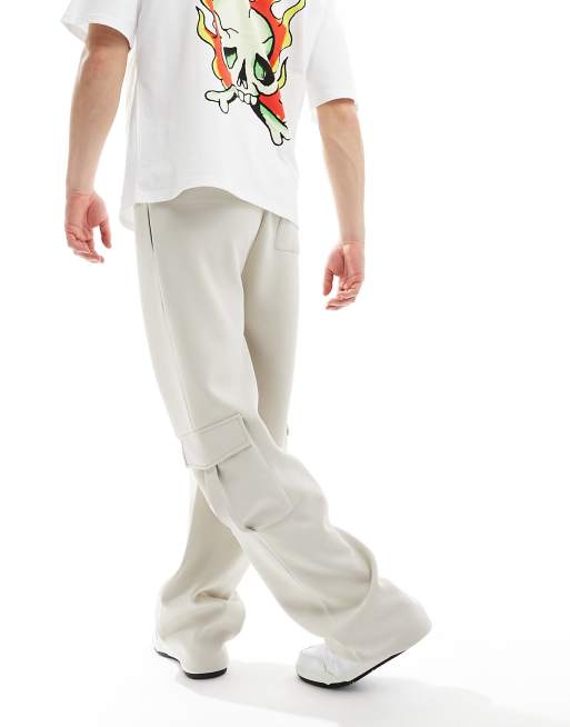 ASOS DESIGN - Beige joggingbukser med vidde og cargolommer i scubastof