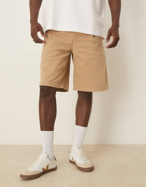 ASOS DESIGN - Beige lange shorts med dobbelte indsnit og læg