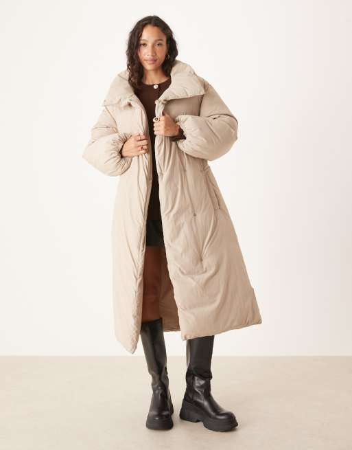 ASOS DESIGN - Beige longline-dynejakke med ståkrave