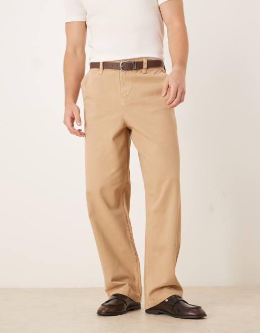 ASOS DESIGN - Beige og løstsiddende bukser med lige ben