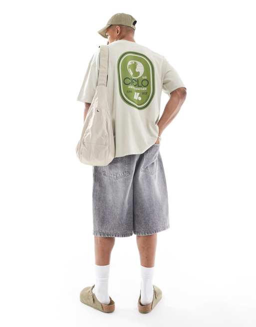 ASOS DESIGN - Beige og oversized T-shirt med sportsgrafik