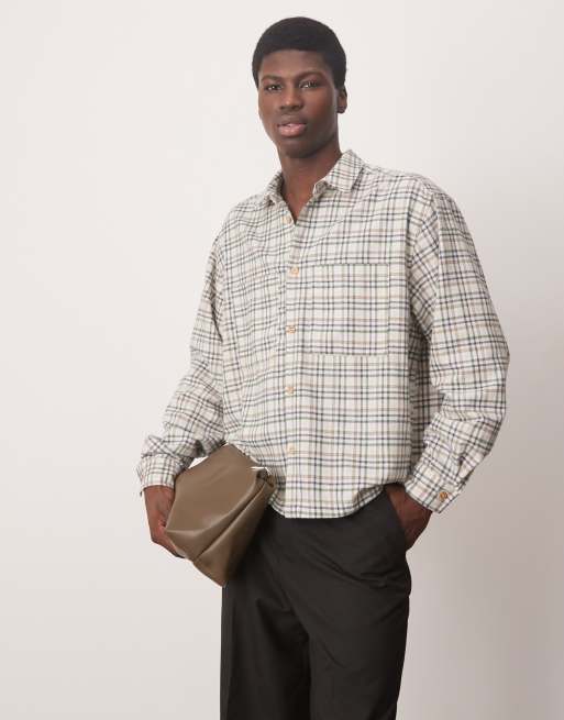 ASOS DESIGN - Beige og ternet flannelskjorte med oversized og firkantet pasform
