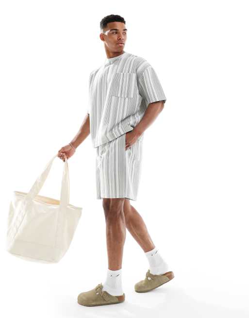 ASOS DESIGN - Beige oversized shorts med tekstur og striber