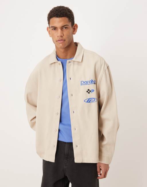 ASOS DESIGN - Beige oversized skjorte i bomuldstwill med broderi på brystet