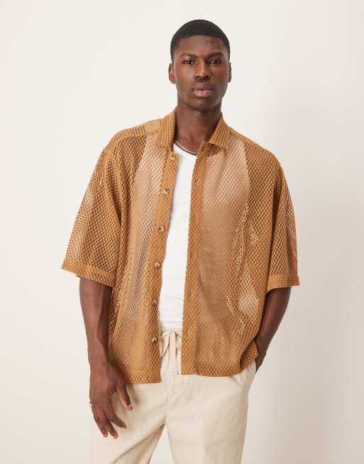 ASOS DESIGN - Beige oversized skjorte i mesh i firkantet pasform