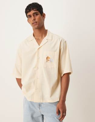 ASOS DESIGN - Beige oversized skjorte med reverskrave og broderi på brystet i firkantet pasform