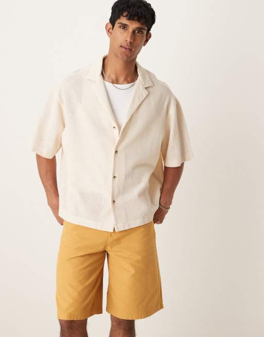 ASOS DESIGN - Beige oversized skjorte med tekstur i firkantet pasform