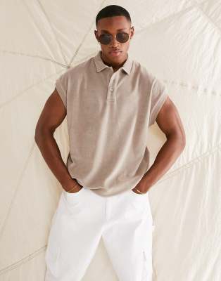 ASOS DESIGN - Beige oversized top i frotté med polokrave