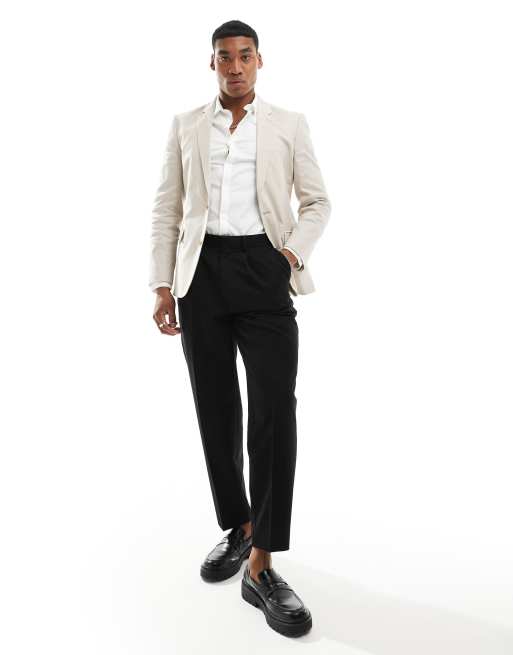 ASOS DESIGN - Beige skinny habitjakke i hørblanding