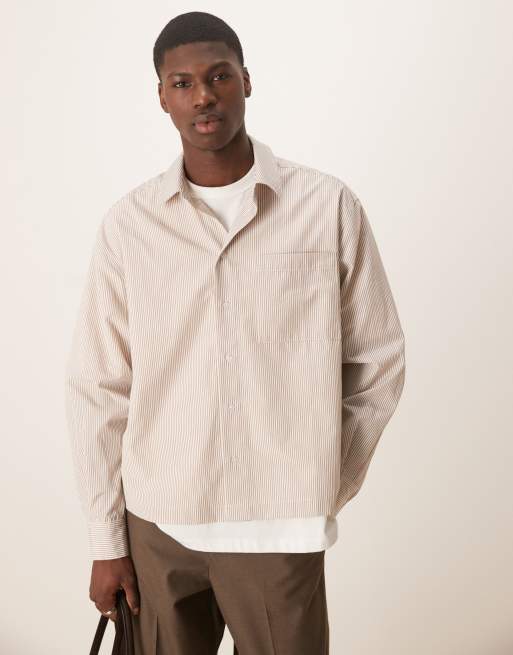ASOS DESIGN - Beige skjorte med striber i oversized og firkantet pasform