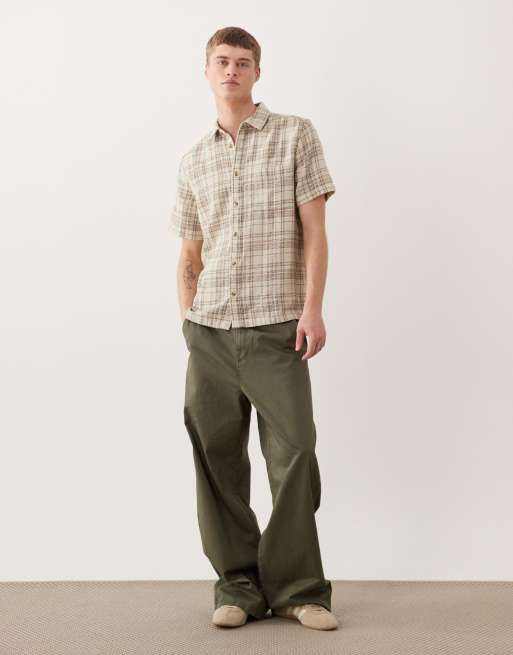 ASOS DESIGN - Beige skjorte med teksturerede tern i regular fit
