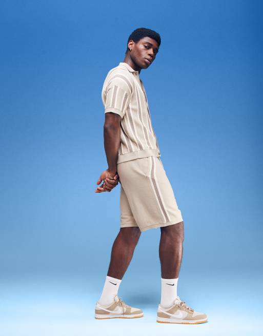 ASOS DESIGN - Beige strikkede oversized shorts med tekstur - Del af sæt