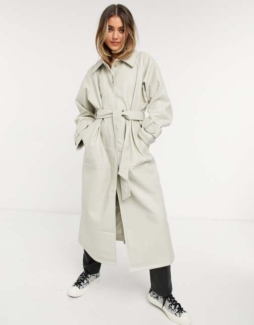 ASOS DESIGN - Beige trenchcoat med krave i imiteret læder