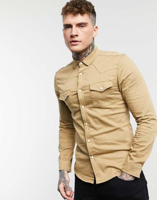 ASOS DESIGN - Beige western-denimskjorte i skinny fit