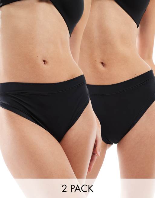 ASOS DESIGN - Bella - Pakke med 2 par sorte brasilianske trusser med høj talje i superblødt stof