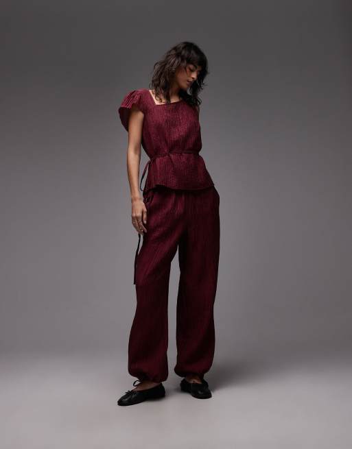 ASOS DESIGN - Billow - Bordeaux bukser i gennemsigtigt krølstof - Del af sæt
