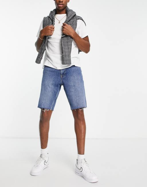 ASOS DESIGN - Blå dad-denimshorts med rå kanter