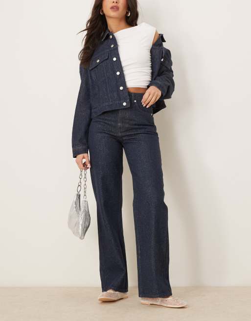 ASOS DESIGN - Blå dad-jeans med glimmer