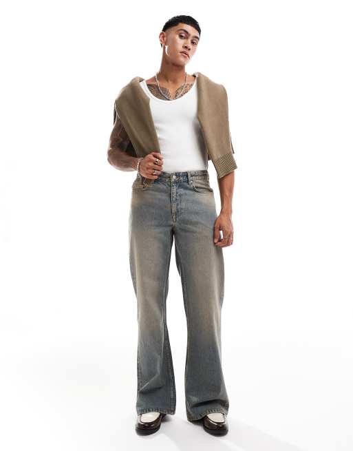 ASOS DESIGN - Blå jeans med tonet finish og brede ben med svaj