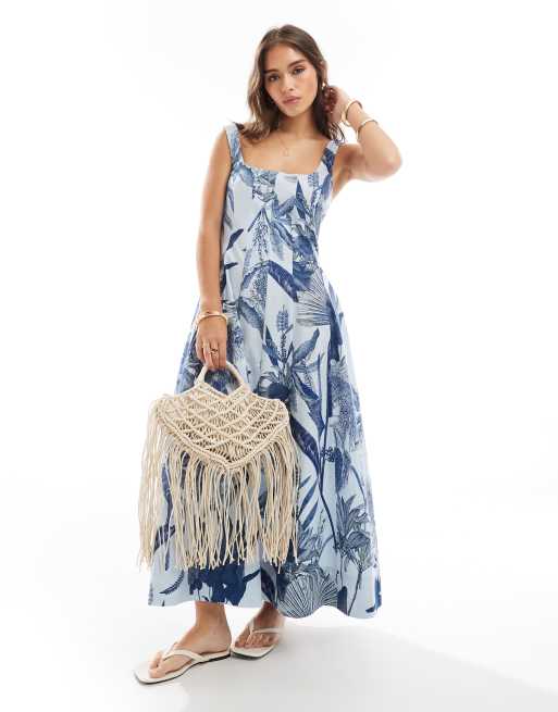 ASOS DESIGN - Blå maxi-sundress i tennisdesign med sømme og tropisk print