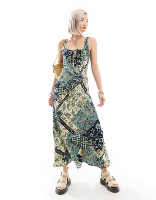 ASOS DESIGN - Blå midikjole med bindebånd foran og paisley-print