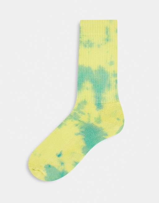 ASOS DESIGN - Blå og gul batikfarvede sportssokker