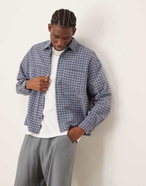 ASOS DESIGN - Blå oversized skjorte med tern i flonel i firkantet pasform
