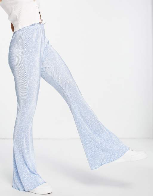 ASOS DESIGN - Blå plisserede bukser med svaj og småblomstret print
