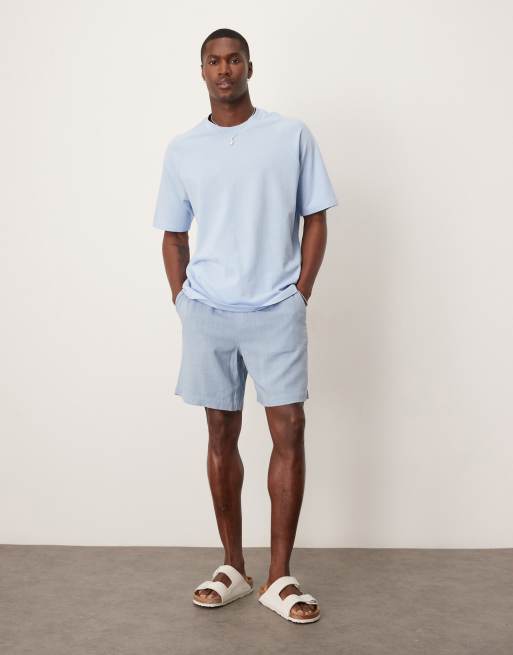 ASOS DESIGN - Blå posede pull-on-bukser i hørrigt stof