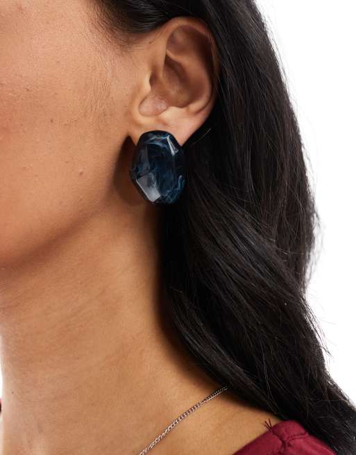 ASOS DESIGN - Blå øreringe med abstrakt, ovalt design i resin