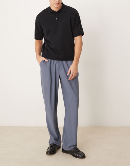 ASOS DESIGN - Blå skræddersyede bukser med nålestriber i blødt stof i poset pasform