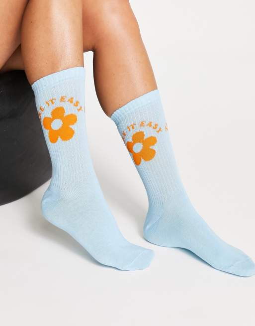 ASOS DESIGN - Blå sokker med blomsterlogo