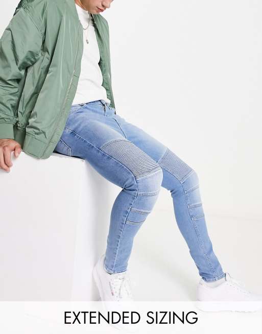 ASOS DESIGN - Blå spray on-jeans med power-stretch og biker-detalje