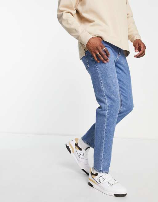 ASOS DESIGN - blå Tapered jeans med stræk i mid wash blå