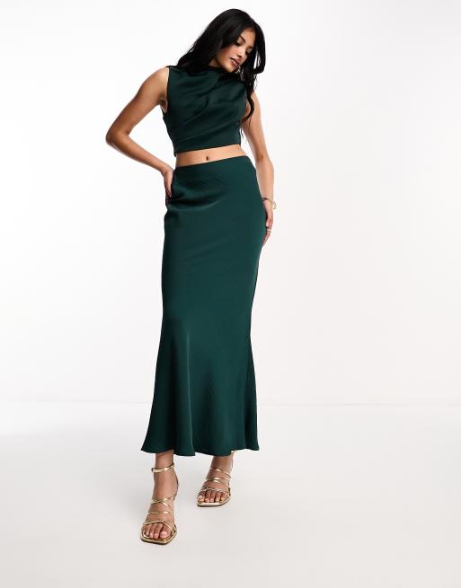 ASOS DESIGN - Blågrøn højhalset midikjole i satin med udskæringsdetalje i taljen