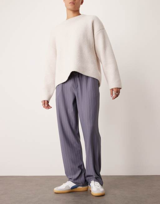 ASOS DESIGN - Blågrønne og posede bukser med nålestriber - Del af sæt