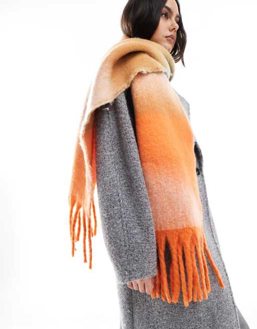 ASOS DESIGN - Blåt og orange halstørklæde med stribet ombre-design i børstet materiale