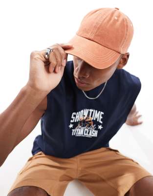 ASOS DESIGN - Blød kasket i brændt orangefarvet vask med syninger i konrastfarve