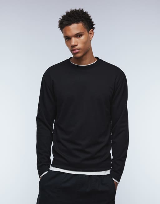 ASOS DESIGN - Blød og afslappet sort T-shirt i kraftigt stof med lange ærmer