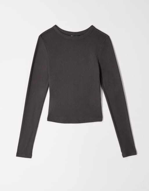 ASOS DESIGN - Blød og krympet T-shirt med lange ærmer i ravenfarvet