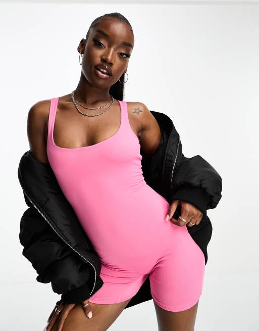 ASOS DESIGN - Blød, tætsiddende heldragt med tynde stropper i pink