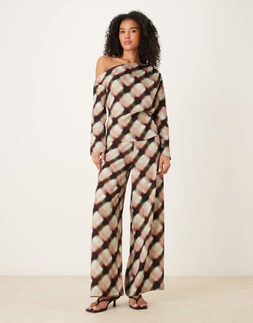 ASOS DESIGN - Bløde bukser med vide ben og slørede tern - Del af sæt