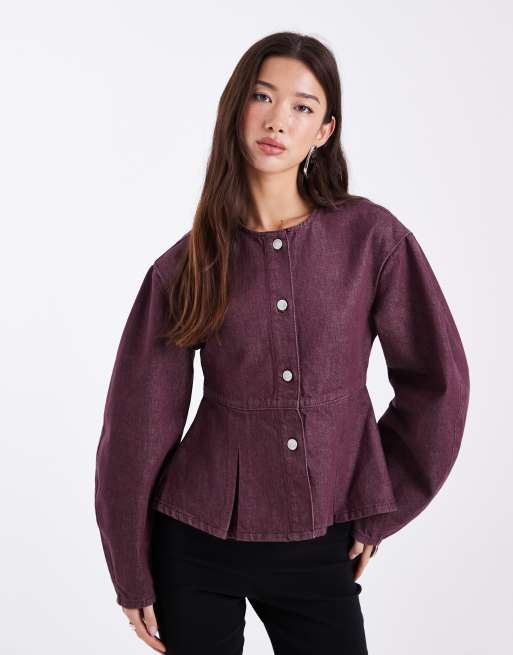 ASOS DESIGN - Blommefarvet peplum-top med cocoon-ærmer i denim